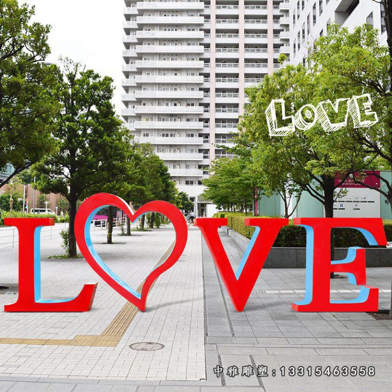 雕塑的材料有石雕、木雕、锻铜、铸铜、不锈钢、玻璃钢、玻璃、冰雕、雪雕等。彩色不锈钢LOVE英文字母雕塑是一款不锈钢雕塑产品,不锈钢雕塑采用的材质有316#不锈钢等,沿海城市由于盐碱度的原因,建议采用304#,厚度如果没有特殊要求一般为3.0mm等,板材厚度越大,越难塑造,价格也越高。